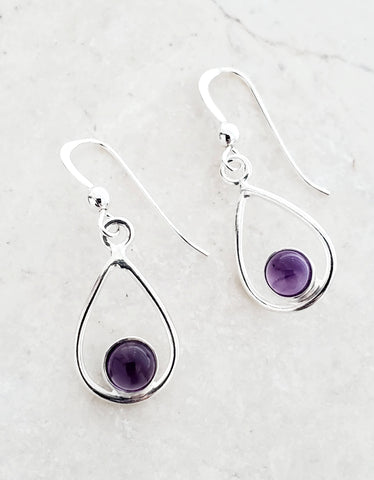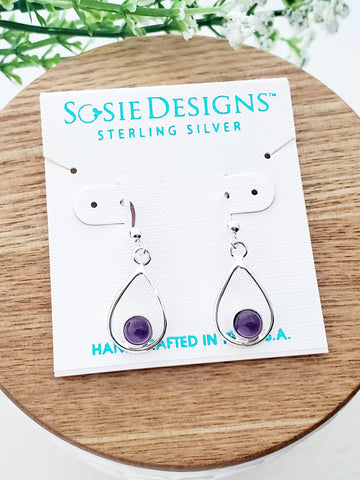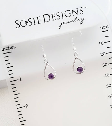 Elevate your style with our Sterling Silver Teardrop Earrings, featuring the captivating Amethyst gemstone. These earrings, a product of Sosie Designs, are a testament to Sonia 'Sosie' Schimke's passion for hand-crafting unique jewelry pieces. Created in our sunny studio in San Jose, California, these earrings reflect the beauty and grace that our brand embodies. Our focus on quality and intricate detail is evident in the .925 sterling silver used. These teardrop dangle earrings are not just an accessory, but a unique piece of art.
