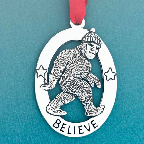 The Bigfoot Boxed Pewter Ornament is a striking silver piece that captures the elusive essence of Sasquatch. Crafted with meticulous attention to detail, this ornament showcases a beautifully rendered depiction of Bigfoot, making it a perfect addition to any collection or a unique gift for enthusiasts of cryptozoology. Its elegant design and high-quality pewter finish ensure that it will be a cherished keepsake for years to come. Box size (3"x5") Handmade By The Sea! 10% Of profits fund charitable organizations.