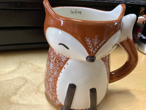 Fox Cup of Cozy Cup by Natural Life.Brown with a small floral design in beige.